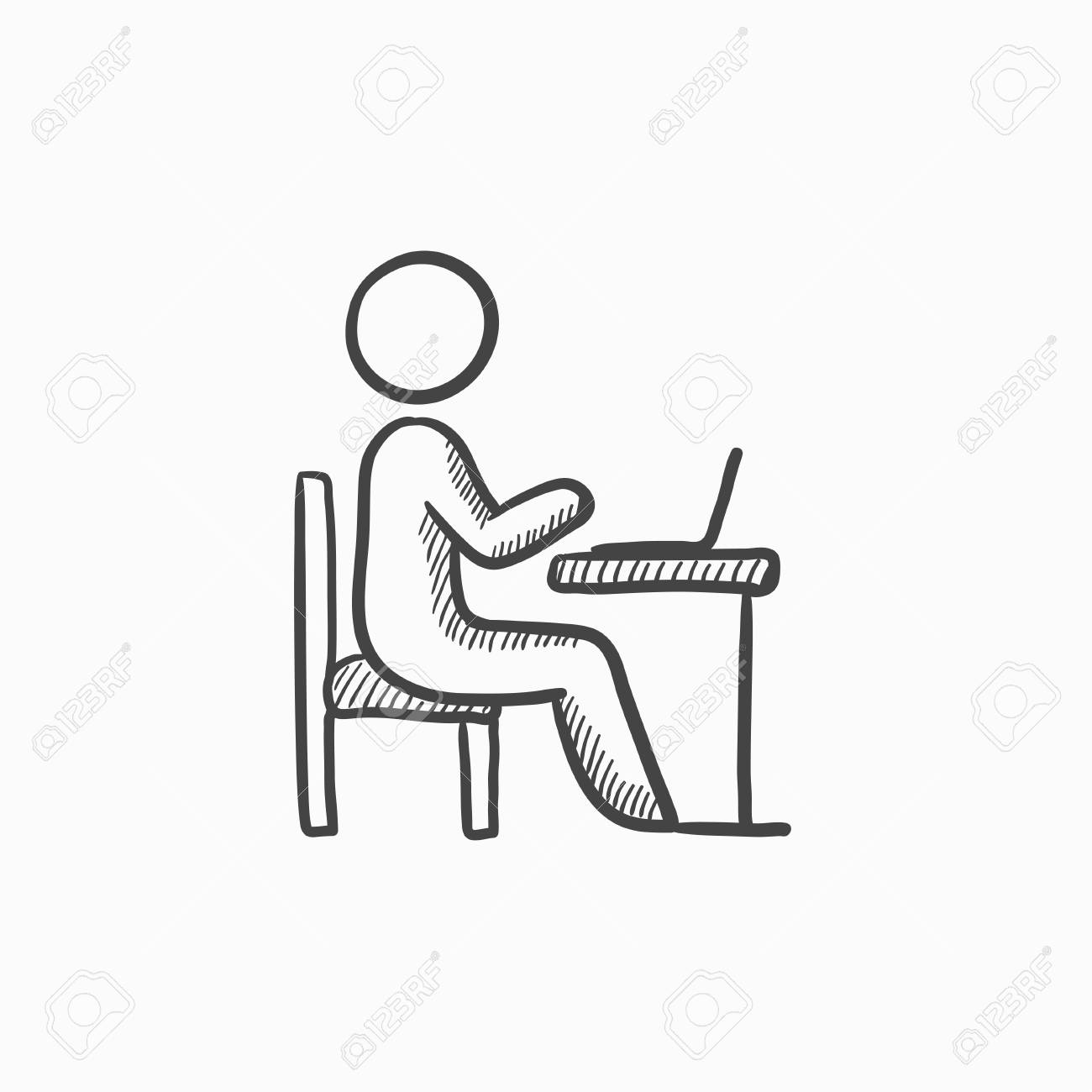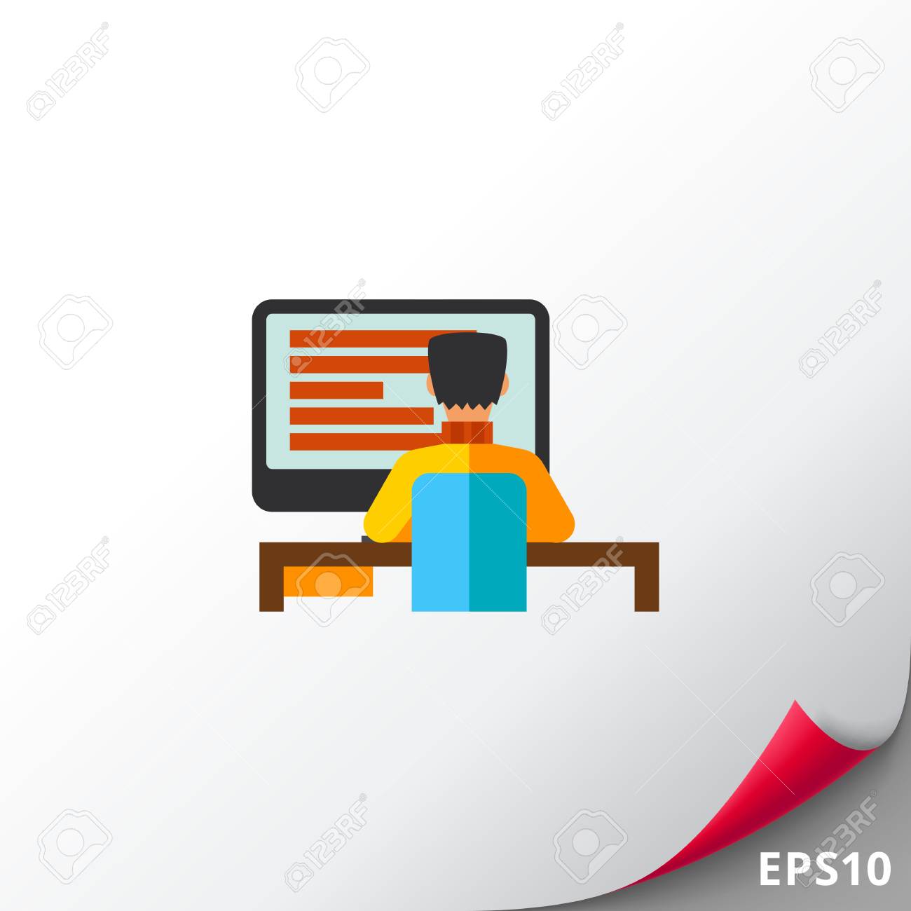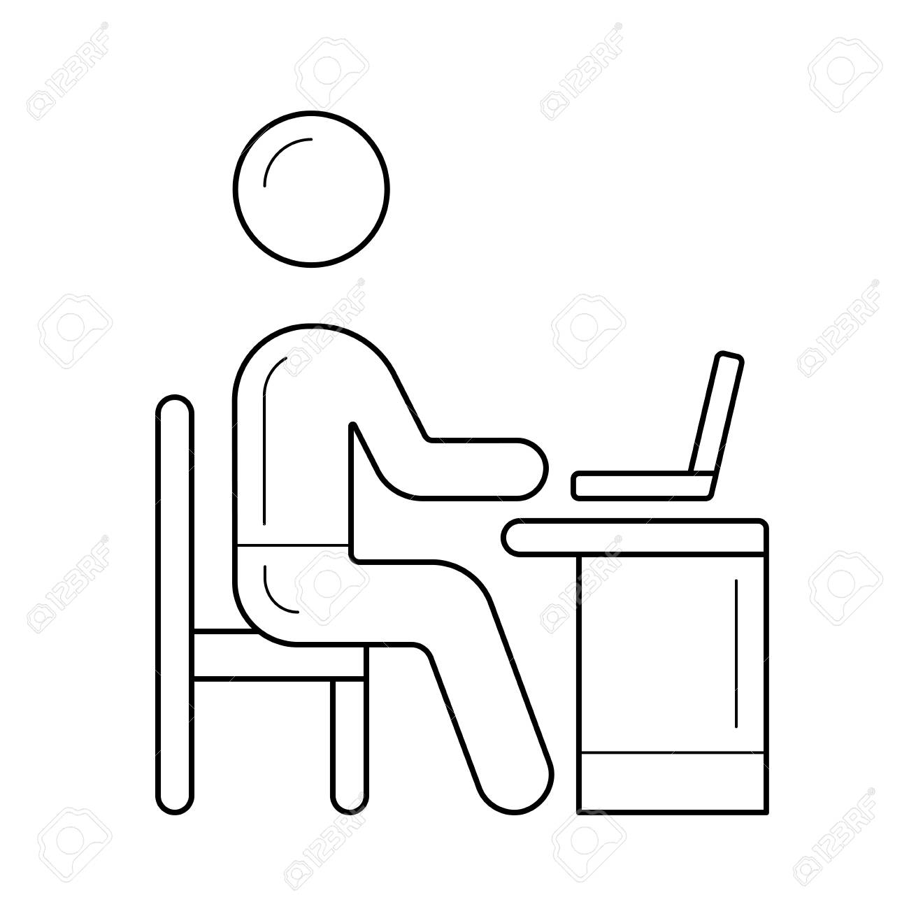 Sirva El Frente Que Se Sienta Del Ordenador En Icono De La Tabla De Trabajo Ilustración del Vector - Ilustración de ordenador, ocupado: 128750167