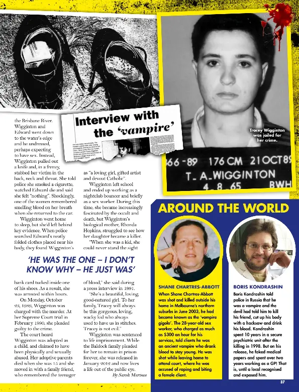 True Crime and fighting for justice - TRACEY WIGGINTON The Lesbian Vampire Killer Tracey Wigginton (born 1965) is an Australian murderer who achieved notoriety for killing Edward Baldock in 1989, supposedly to