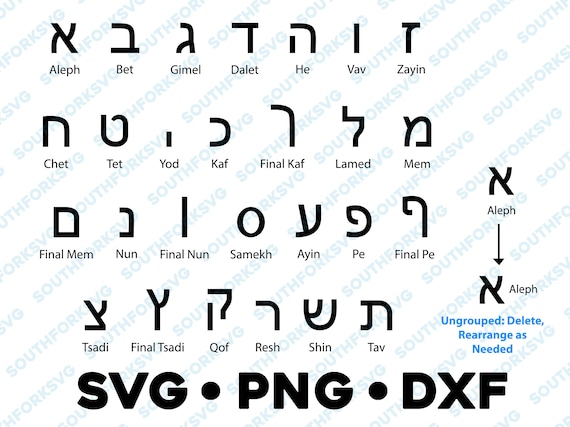 Alfabeto hebreo Sans Serif Letras SVG PNG DXF Bundle / Aleph Learning Languages Jewish Script Contemporary Block Font - Etsy México