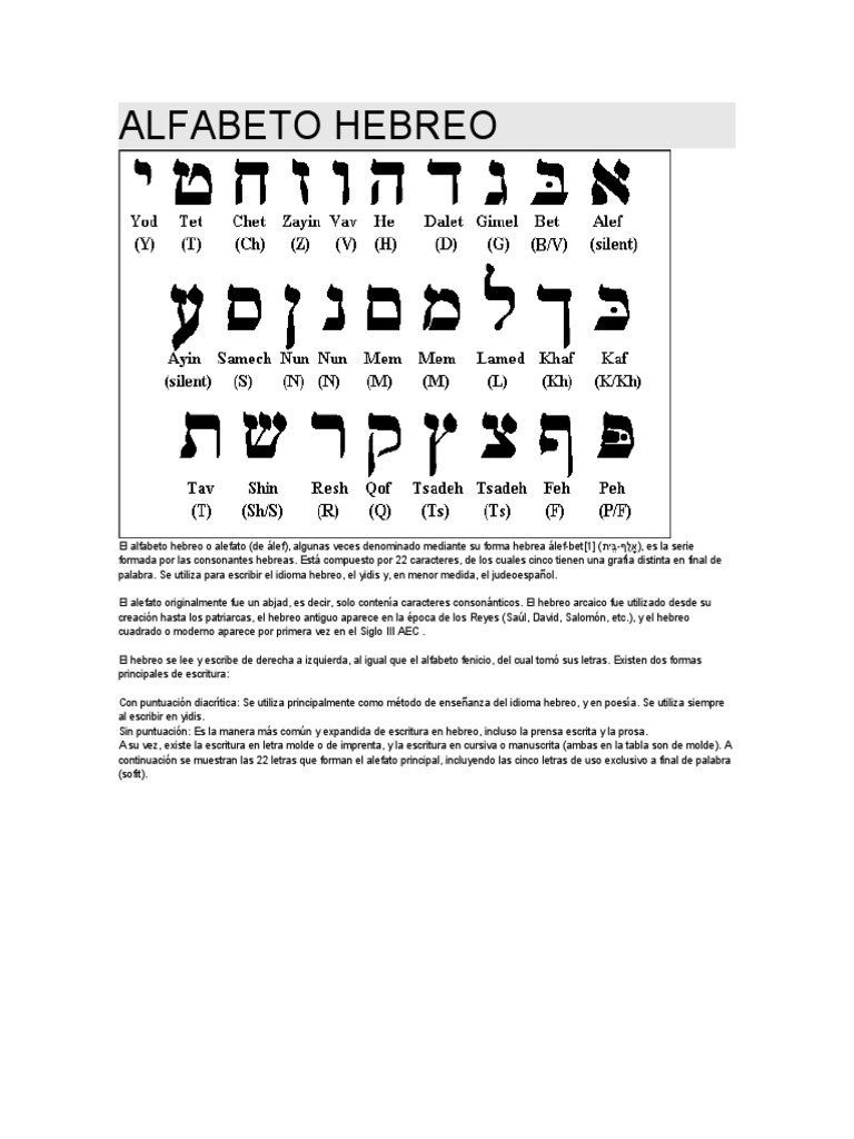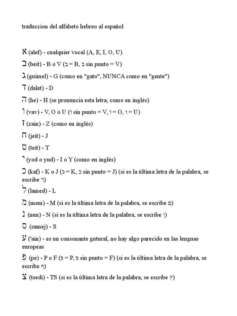 Alfabeto Hebreo Traducido Al Español | PDF | Lenguaje hebreo | Alfabeto