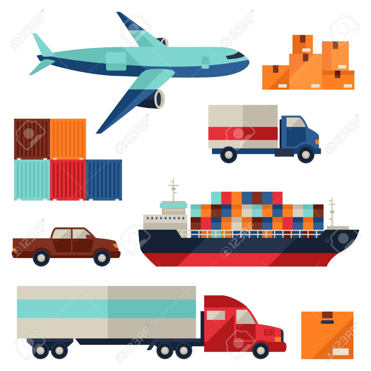 Iconos De Transporte De Carga De Mercancías Establecidas En El Estilo De Diseño Plano. Ilustraciones svg, vectoriales, clip art vectorizado libre de derechos. Image 44348849