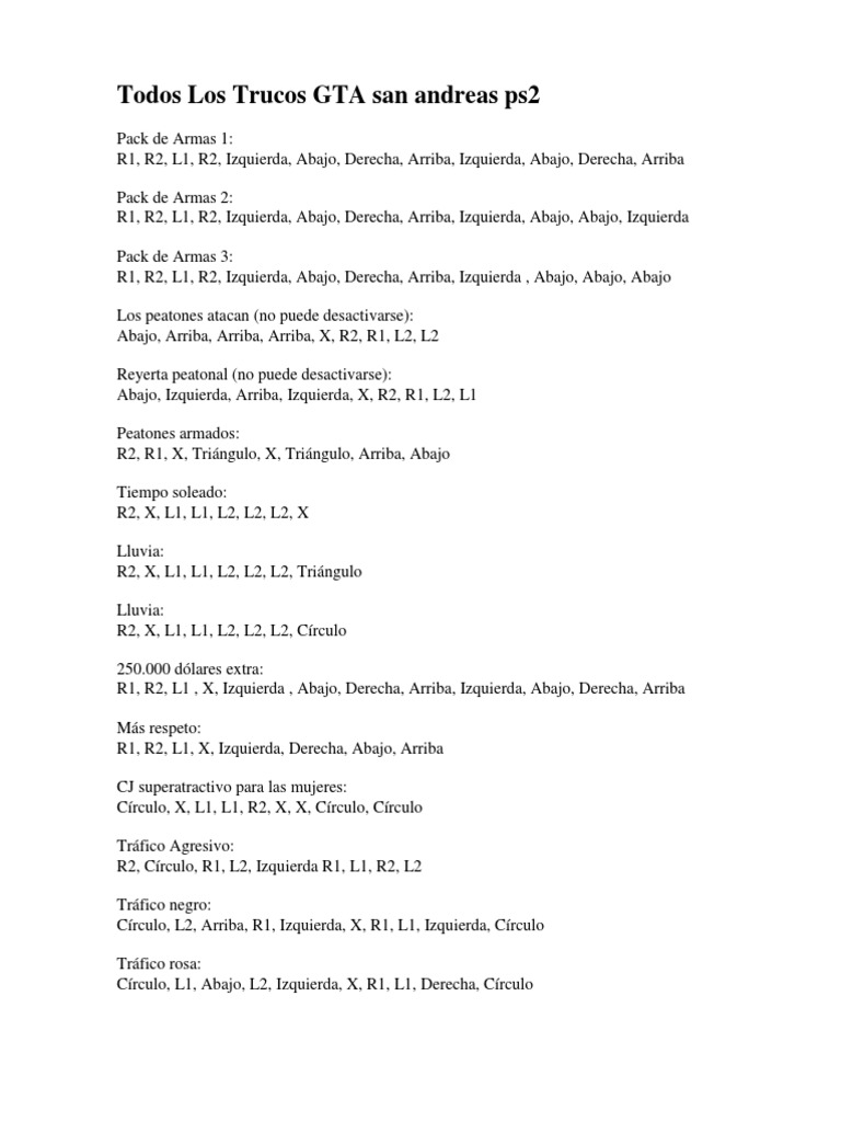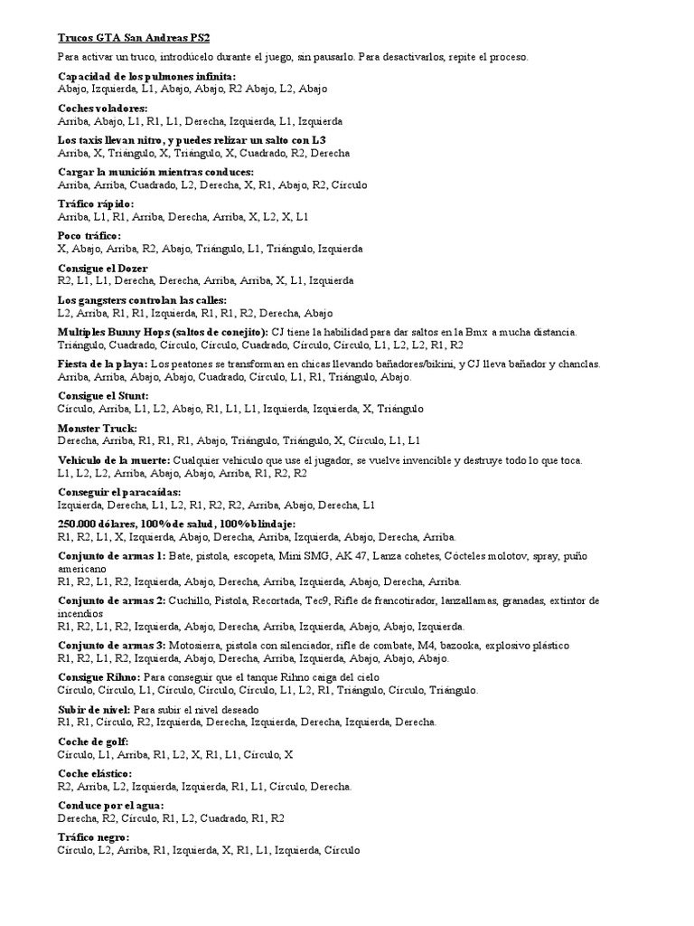 Todos Los Trucos GTA San Andreas ps2 | PDF | Ocio | Deportes