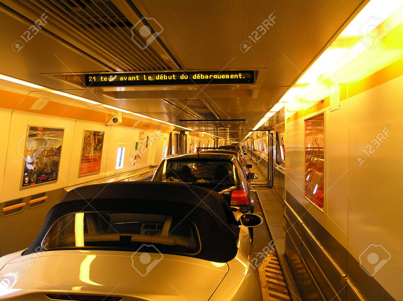 Inglaterra Francia el túnel bajo el Canal de la mancha coches dentro de le shuttle Fotografía de stock - Alamy