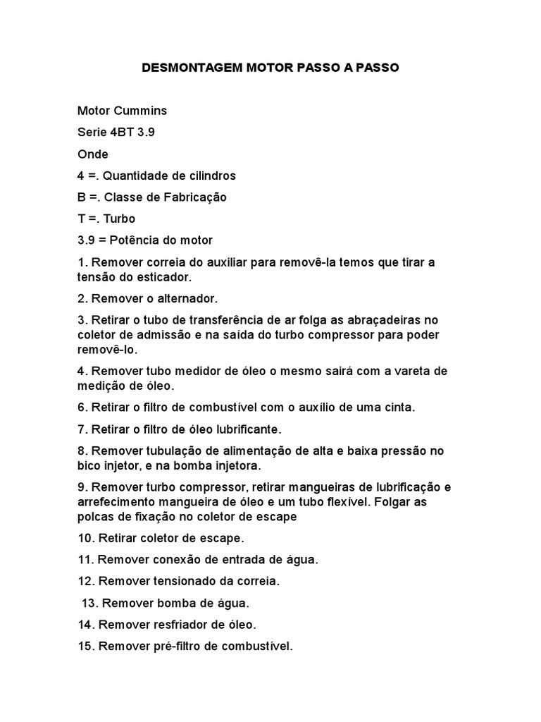 Desmontagem Motor Passo A Passo | Download grátis PDF ...
