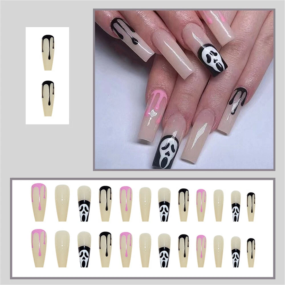Uñas Postizas 24 Piezas Halloween Fantasma Largo Calabaza Espeluznante Con Bailarina Prensa Falsa En Cubierta Completa Puntas De Uñas Arte De 29,42 € | DHgate