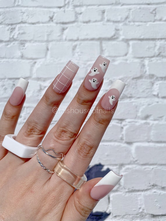 USTED SIDO FANTASMA Uñas de Halloween-prensa ons-uñas largas cortas-uñas falsas-prensa fantasma en uñas-arte de uñas fantasma - Etsy México