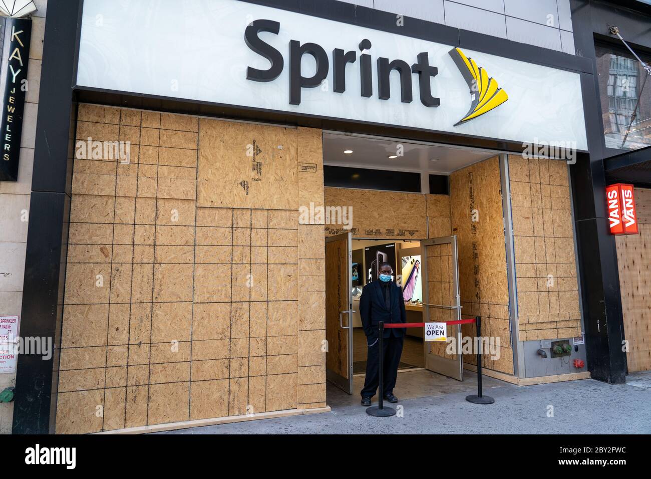 New York, NY - May 17, 2019: Exterior of Sprint store with logo ...