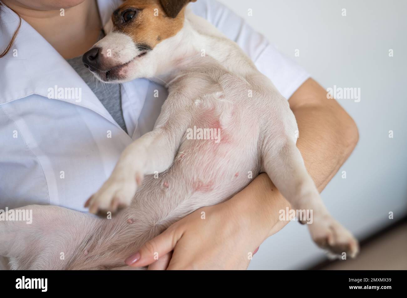 Veterinario sosteniendo un perro jack russell terrier con dermatitis Fotografía de stock - Alamy