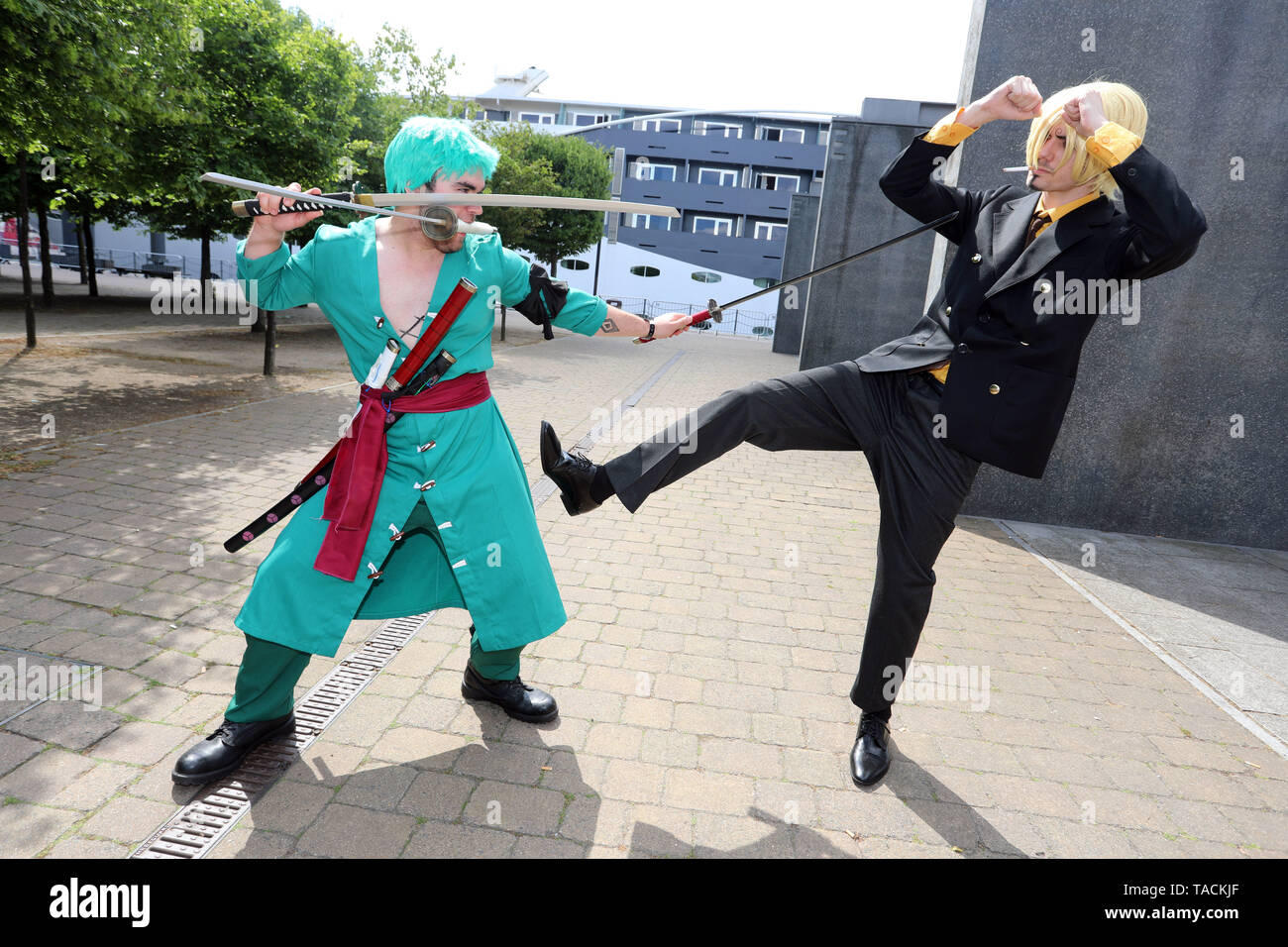 Londres, Reino Unido. El 24 de mayo, 2019. Londres, Reino Unido. El 24 de mayo de 2019. Sanji y Zoro de una pieza en el MCM London Comic Con en Excel London