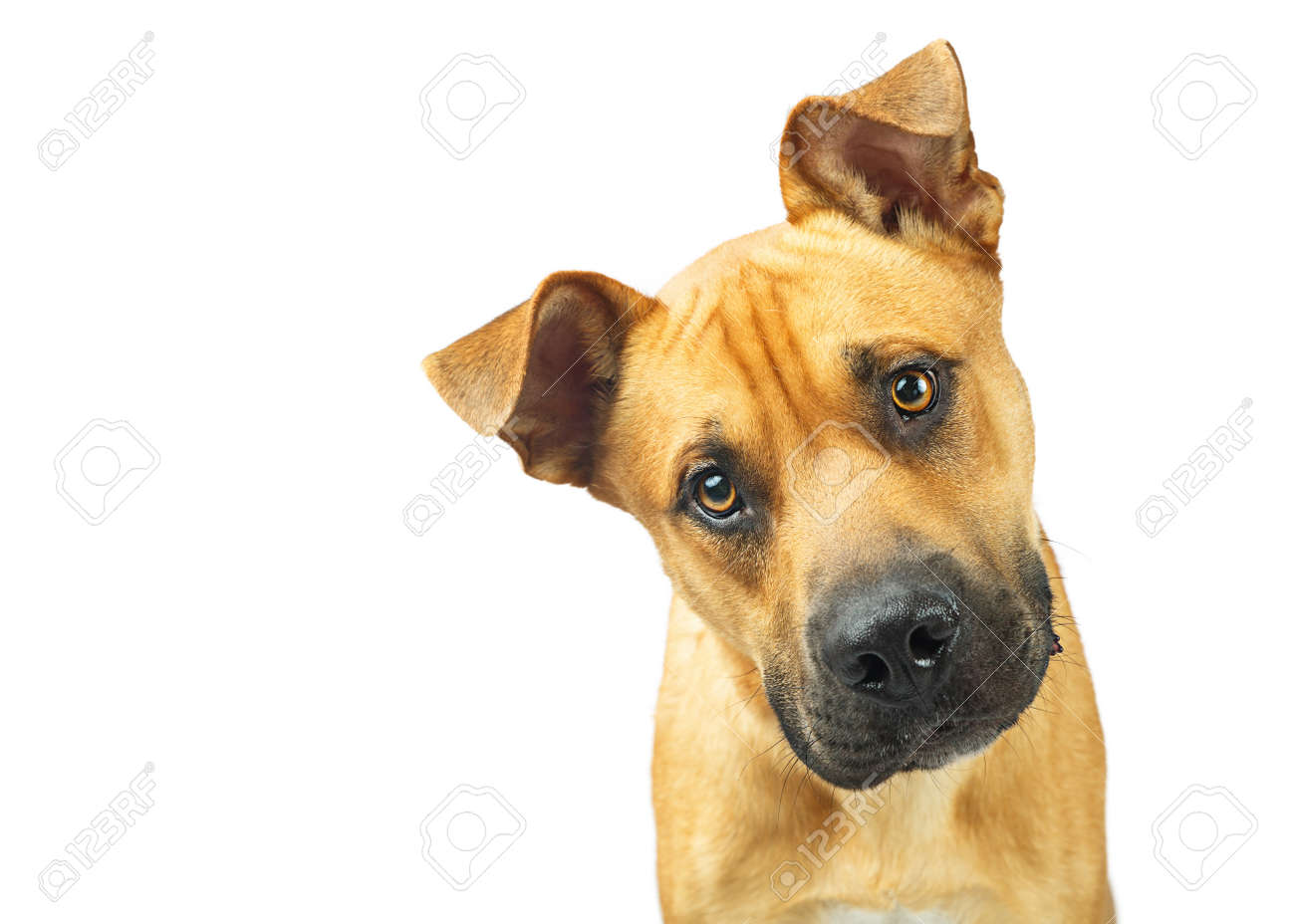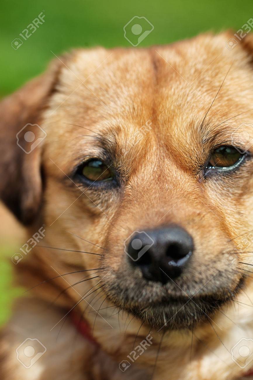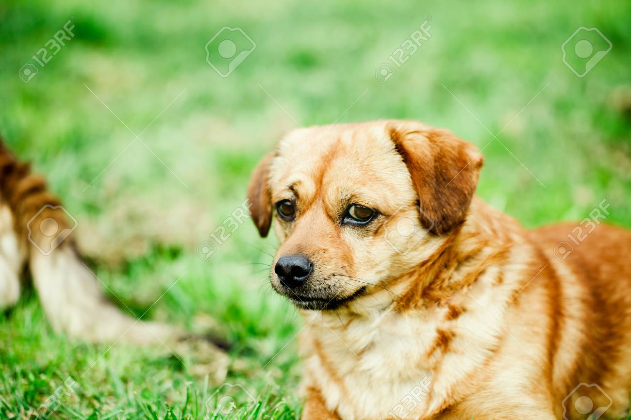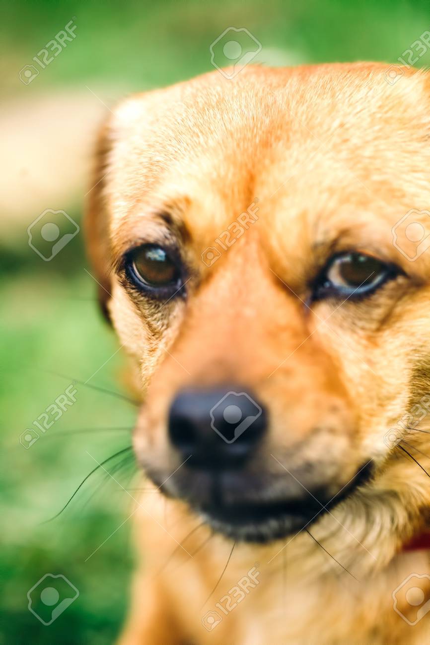 Pequeño Perro Cerca. Mezcla De Raza Cabeza De Perro Amarillo ...
