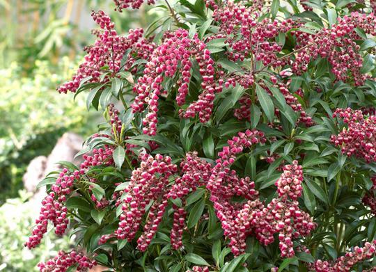Pieris Japonica Valley Valentine - Andromède du Japon à fleurs rose-rouge