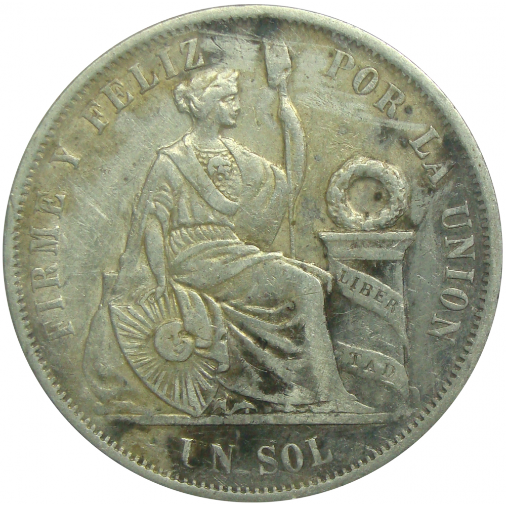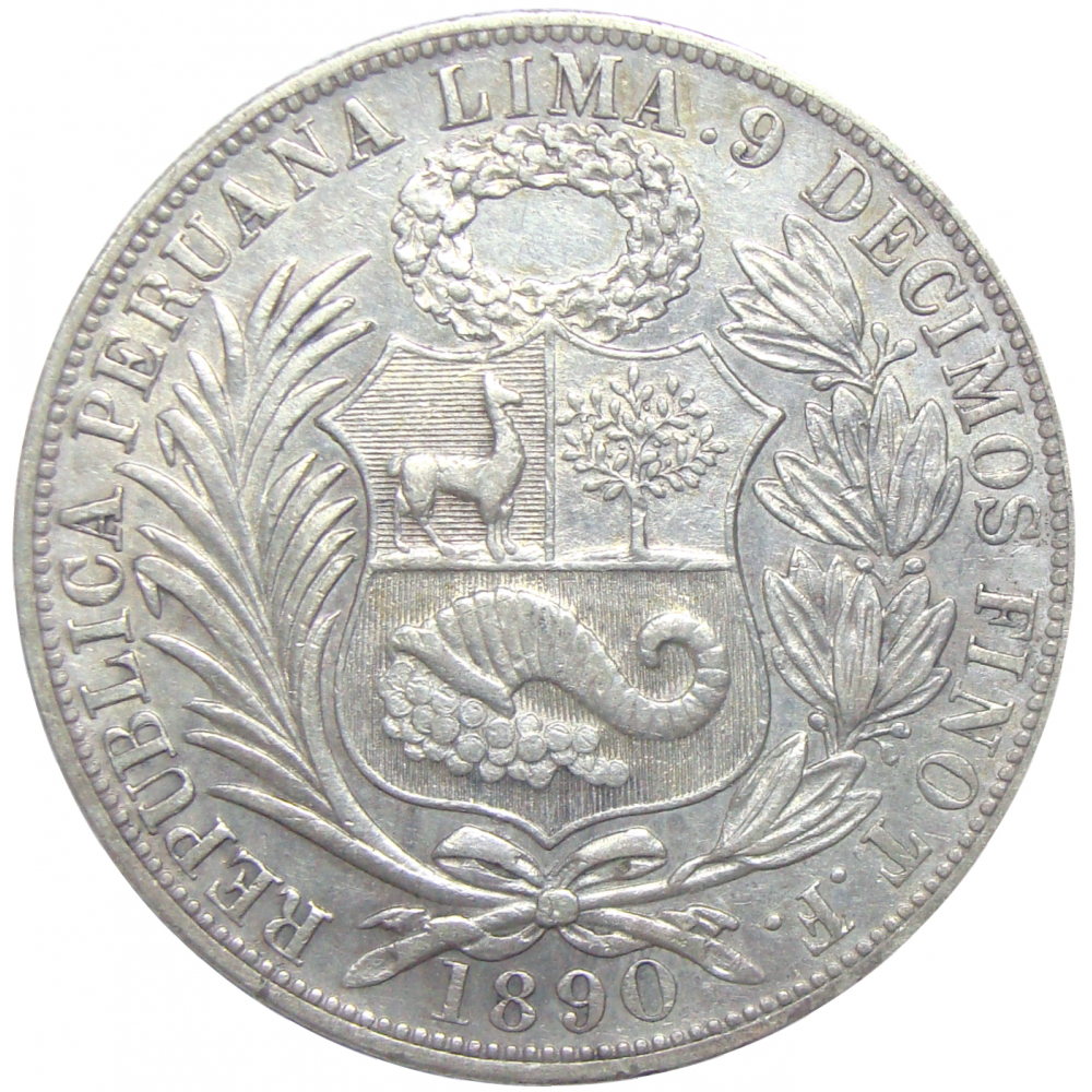Moneda Plata Perú 1 Sol 1890