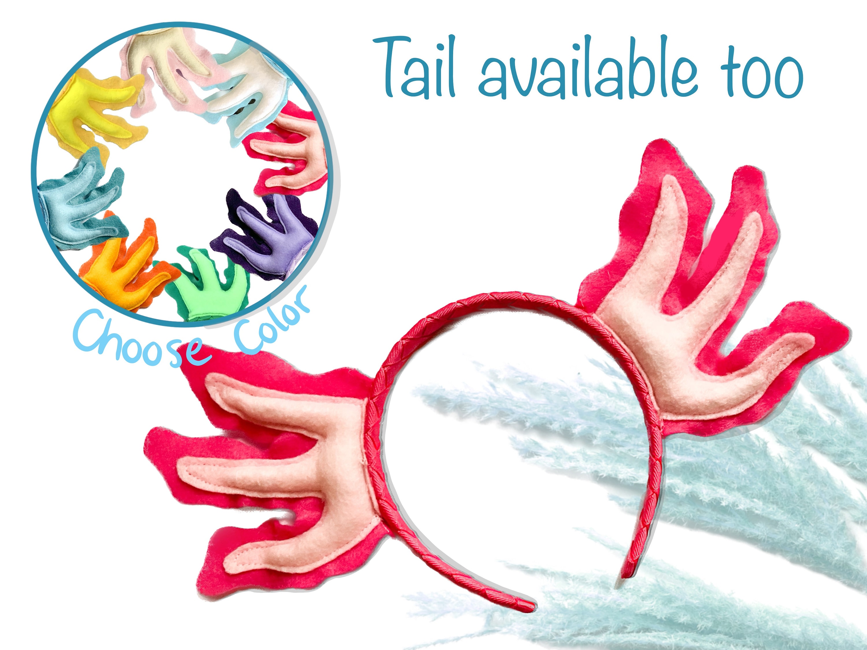 Varios colores AXOLOTL traje branquias diadema y/o cola, tamaño adulto niño niño, diademas de orejas de fiesta de animales, fiesta bajo el mar - Etsy México