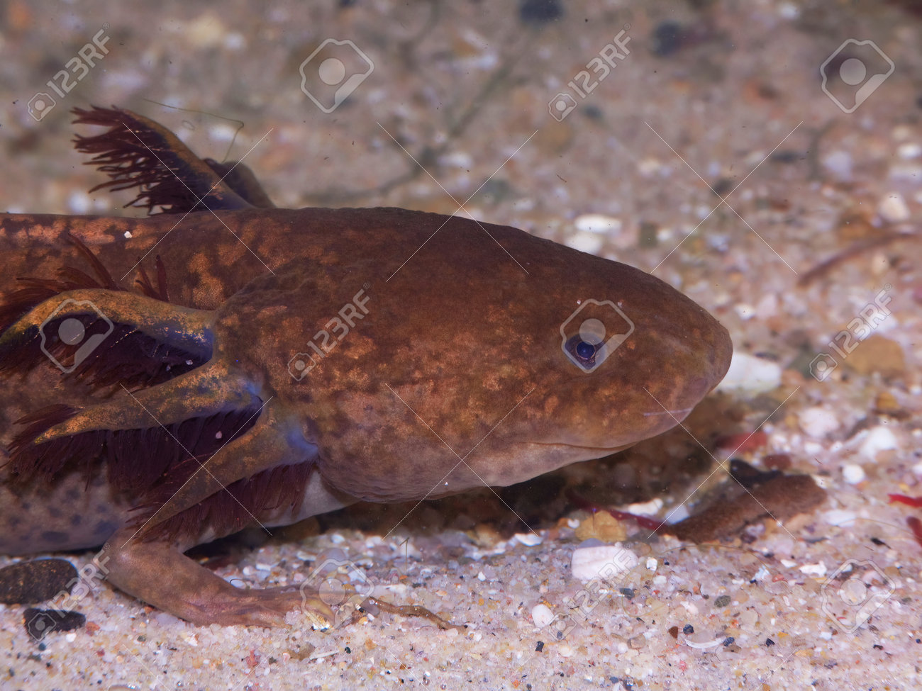 Primer Plano Submarino En El Neaoténico De Color Cobre, Sin Branquias, Ajolote Mexicano, Ambystoma Mexicanum Fotos, retratos, imágenes y fotografía de archivo libres de derecho. Image 201225648
