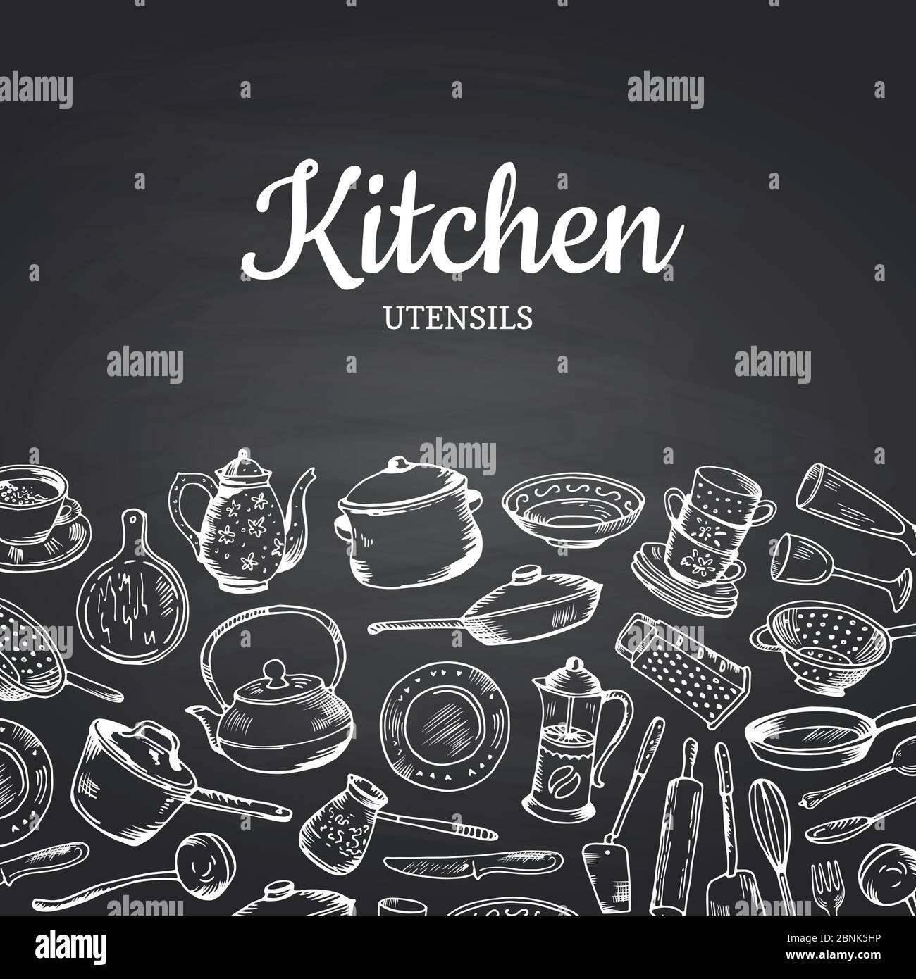 Vector de fondo sobre pizarra negro ilustración con utensilios de cocina y lugar para el texto Imagen Vector de stock - Alamy