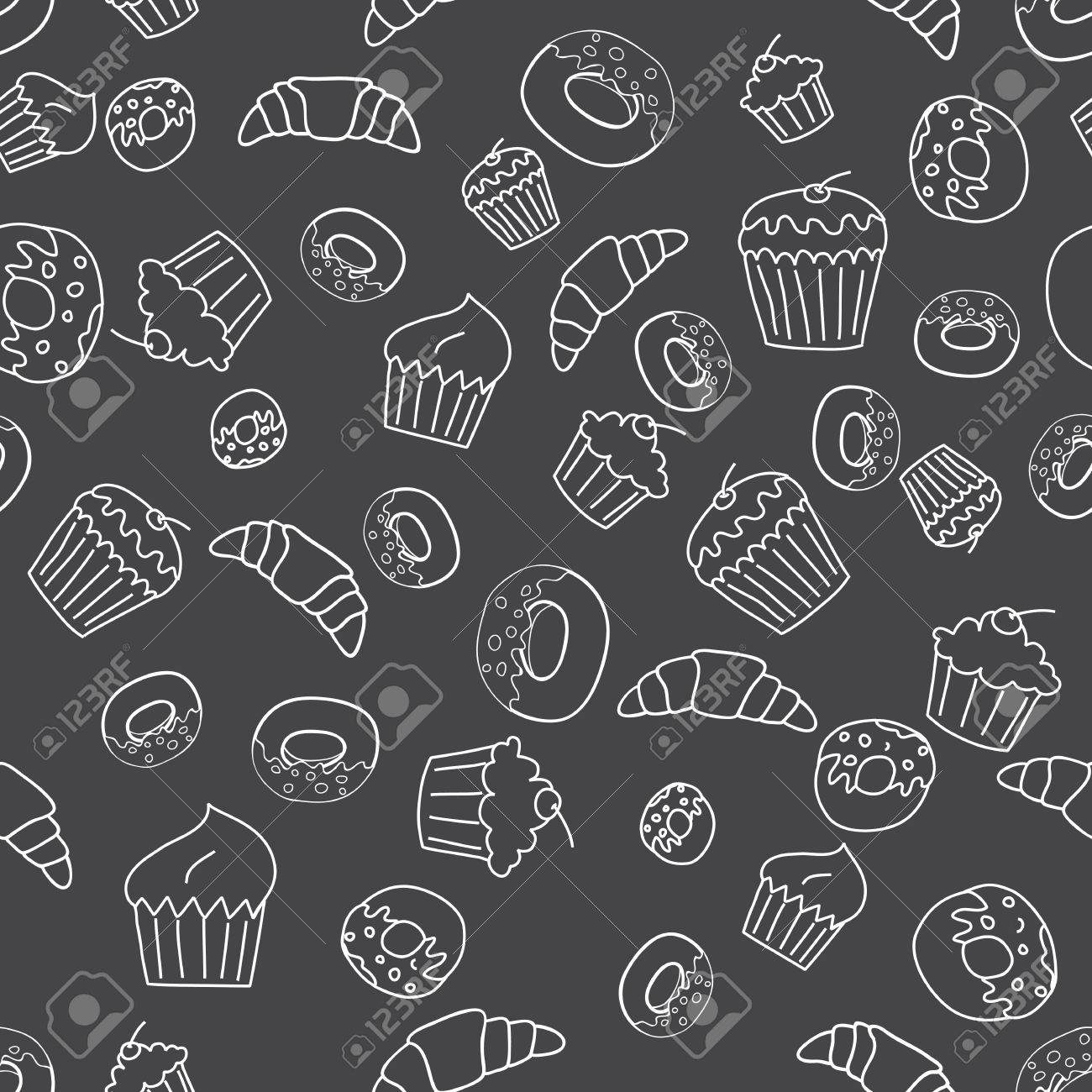Vector De Panadería Sin Problemas De Fondo. Tiza En La Pizarra. Ilustraciones svg, vectoriales, clip art vectorizado libre de derechos. Image 55752101