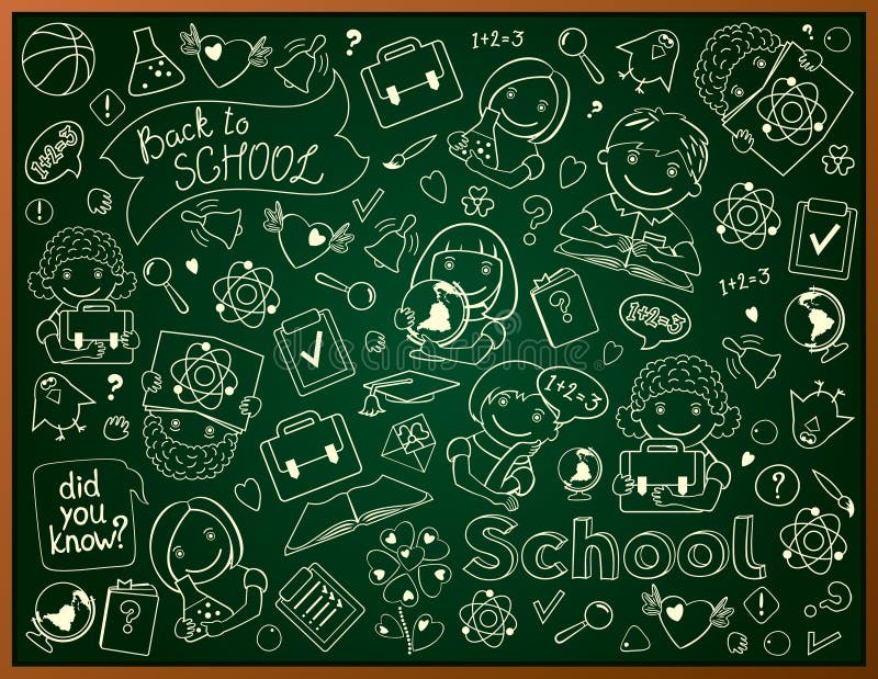 Pizarra escolar con dibujos a tiza - vector | Tiza pizarra, Arte de pizarra, Diseños de pizarra
