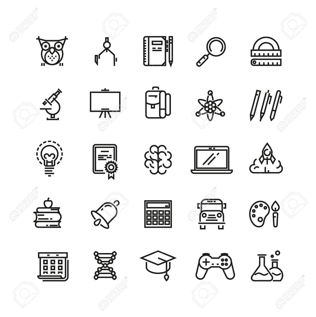 La Educación Escolar Y El Aprendizaje. Esquema De Los Iconos Del Vector. Icono De Estudio, Escuela, Icono La Educación, Icono De Aprendizaje, El Conocimiento Icónico Ilustraciones svg, vectoriales, clip art vectorizado libre