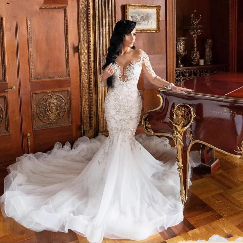 Nuevos Vestidos De Novia De Sirena Modernos Árabes Atractivos Mangas Largas Apliques De Encaje Rebordear De Cristal Espalda Abierta Transparente Vestidos De Novia Formales De Talla Grande De 232,89 € | DHgate