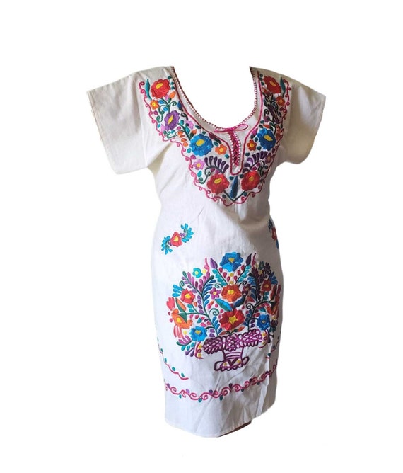 Vestido Mexicano Bordado de Colores. Tallas S a 2X. Vestido ...