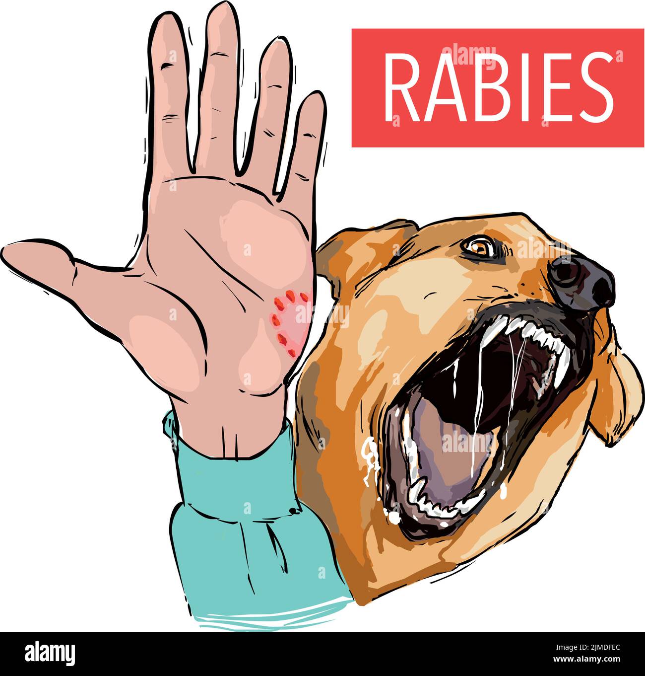 Ilustración De Una Mordedura De Perro, Animal Enfermo, El Virus De La Rabia Ilustraciones svg, vectoriales, clip art vectorizado libre de derechos. Image 66522373