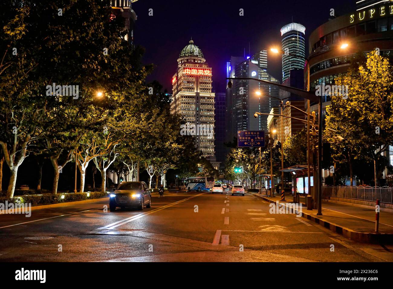 Shanghai de noche, China, Asia, vista nocturna iluminada de una ...