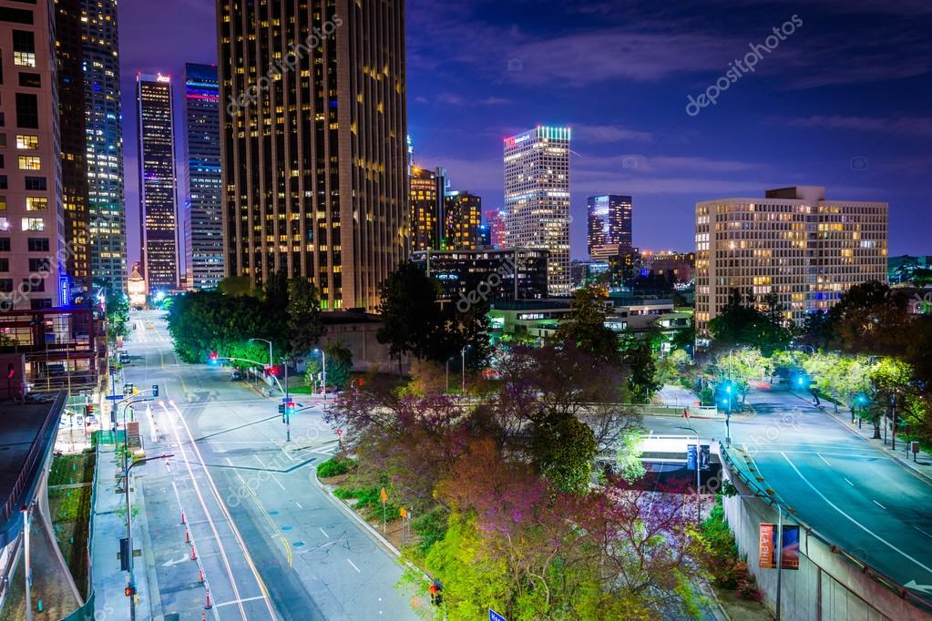 Vista de edificios y calles por la noche, en el centro de Los ...