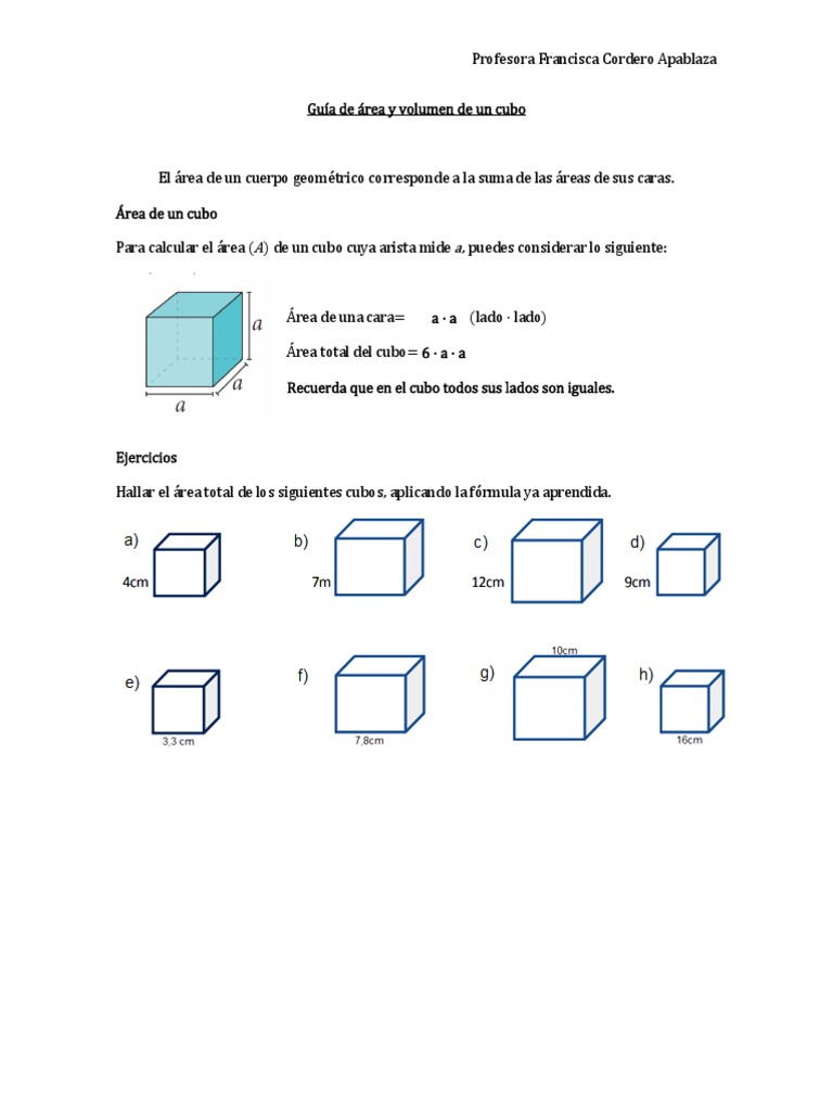 Área y Volumen Del Cubo | PDF | Volumen | Formas geométricas