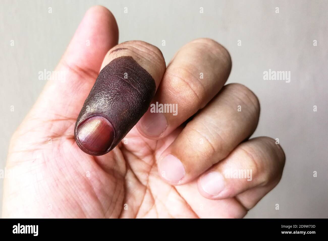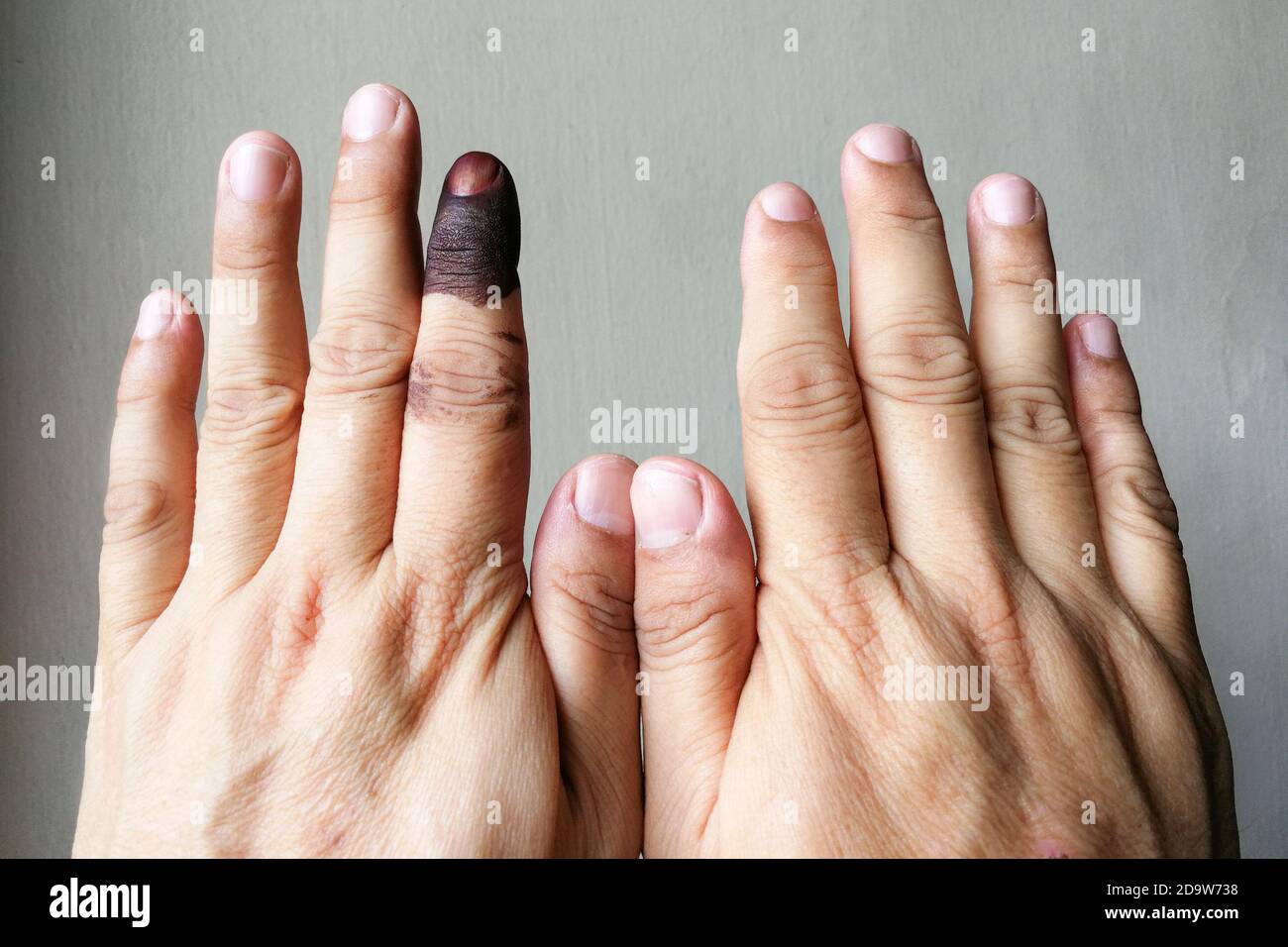 Dedo índice con mancha de tinta indeleble después de votar en la elección Fotografía de stock - Alamy