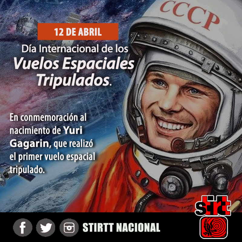 STIRTT Nacional on X: "Hoy se celebra el #DíaInternacionalDeLosVuelosEspacialesTripulados ya que el 12 de abril de 1961 nace en Rusia Yuri Gagarin, quien realizó el primer vuelo espacial tripulado, un evento histórico