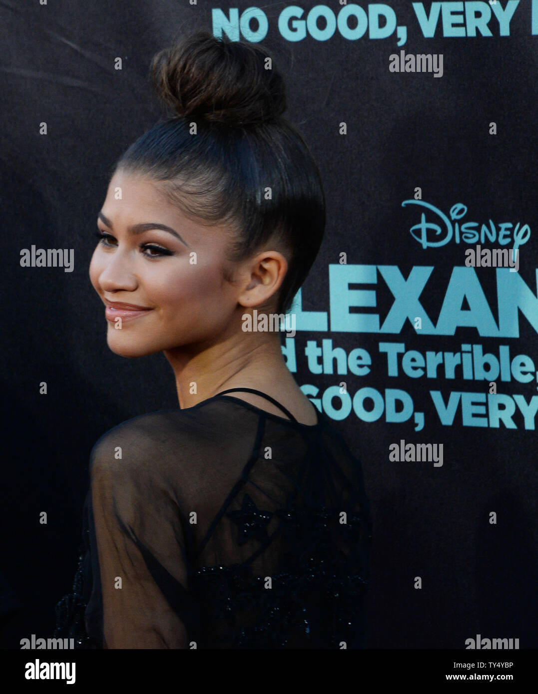 La actriz Zendaya asiste al estreno de la película de la comedia familiar "Alexander y el horrible, horrible, no es bueno, muy mal día" en el Capitan Theatre de Hollywood de la
